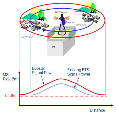 Apart from obvious coverage extension, sharing of existing RF cable and antenna when introducing new service channel for capacity or service upgrade is the major advantage of this system.